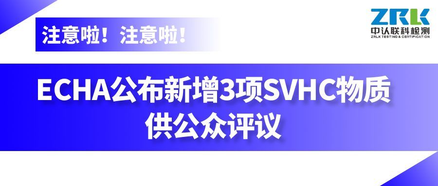2025年9月1日,歐盟化學品管理局(ECHA)公布了新一批SVHC咨詢物質(zhì)清單,對3項潛在的SVHC物質(zhì)展開公眾評議。公眾評議于2025年10月16日結(jié)束,在此期間各利益相關(guān)方均可向ECHA提交評議意見。ECHA將會對公眾提交的反饋意見進行評議,如這3項物質(zhì)通過評議將被加入SVHC正式候選清單。