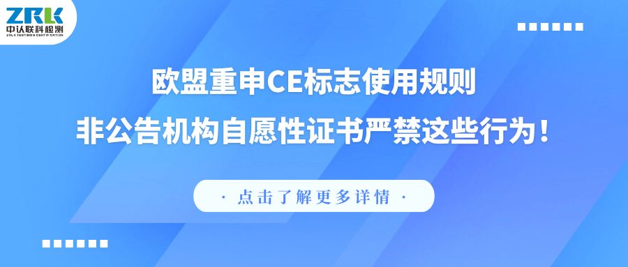 近日,為消除消費者對證書性質(zhì)的誤解,確保CE標志作為歐盟強制性符合性聲明的權(quán)威性和清晰度,歐盟再次重申了2022年6月29日發(fā)布的CE標志的使用規(guī)則COMMISSION NOTICE《The ‘Blue Guide’ on the implementation of EU product rules 2022》。該規(guī)則特別指出:自愿性證書中不得使用“certification”、“independent third party”等字樣,且嚴禁出現(xiàn)CE標志。